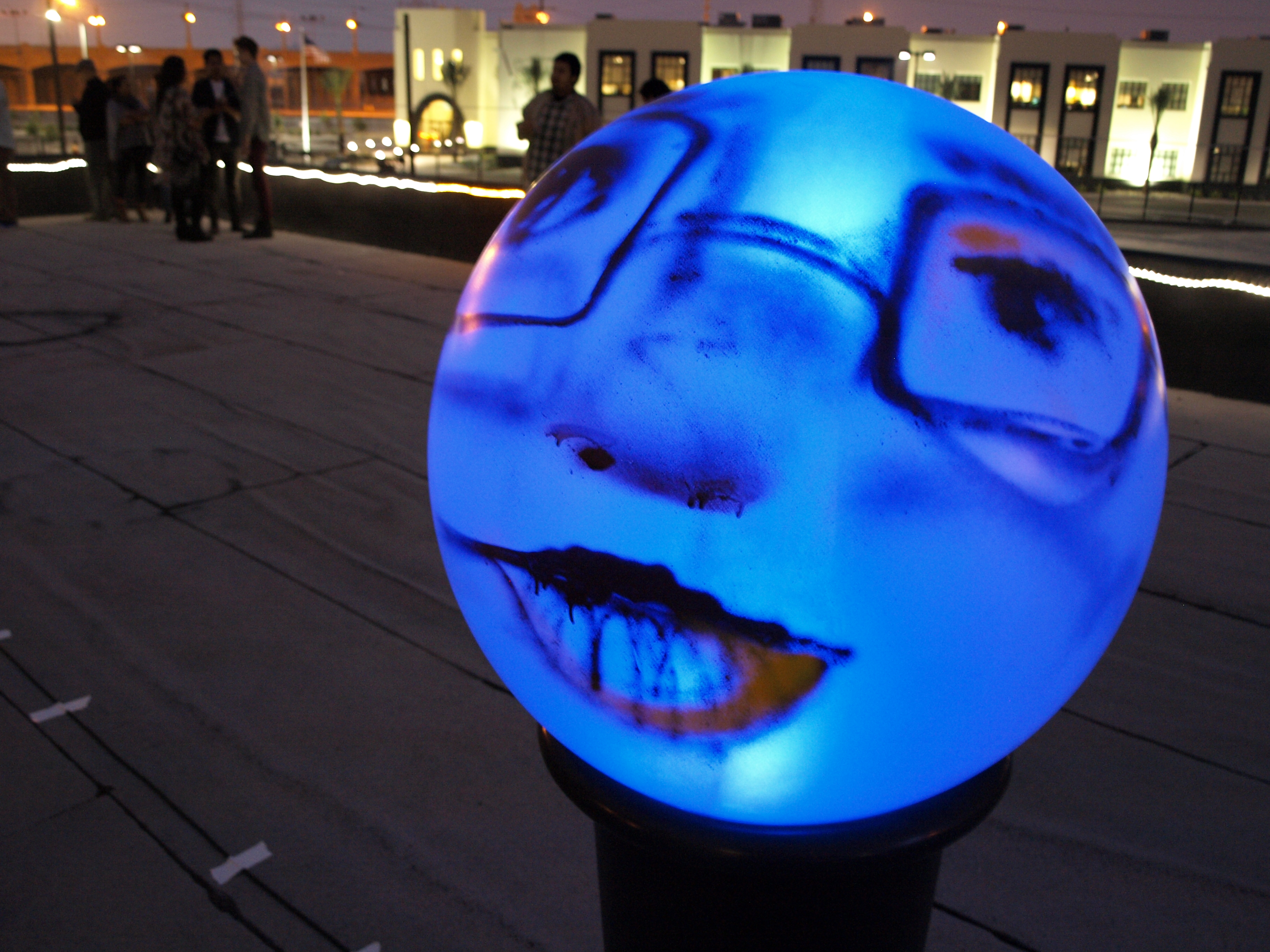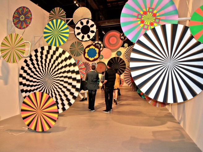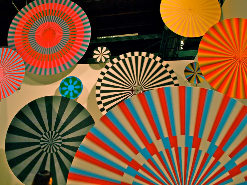 I had two favorites at this exhibit- the first was the spinning wheels exhibit by Jim Drain and Ara Peterson. The spinning wheels stopped everyone who walked by for its sheer visual appeal and size. It resembled the same idea as those windsock dudes who come alive with a fan in front of your neighborhood Jiffy Lube. It is a moving, interactive, colorful display of pattern. Humans cannot resist… I… can’t… help… but … look … at …. it.