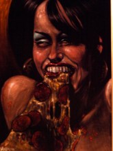 One of my favorite artists there was Chris Brand. His series of made-up women eating, painted on velvet, was fascinating and gross and cool all in one.