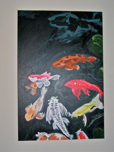 I am always on the lookout for great art for my home. Because I am also a cheapo, if I want a painting, instead of buying one, I create it on my own. There was a picture of Koi fish that I saw in a magazine prior to taking the pictures above. I loved the fish in it. Although I am no Bob Ross, I wanted koi fish to be in my home- the painted version, anyway- and I was going to figure it out.