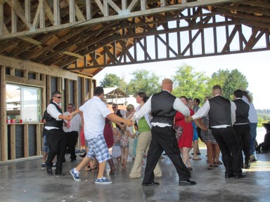 I had a whirlwind trip, a record-breaking 85-95 degree (depending upon which location) weekend, which included a family reunion on Puget Sound and a wedding on a farm.